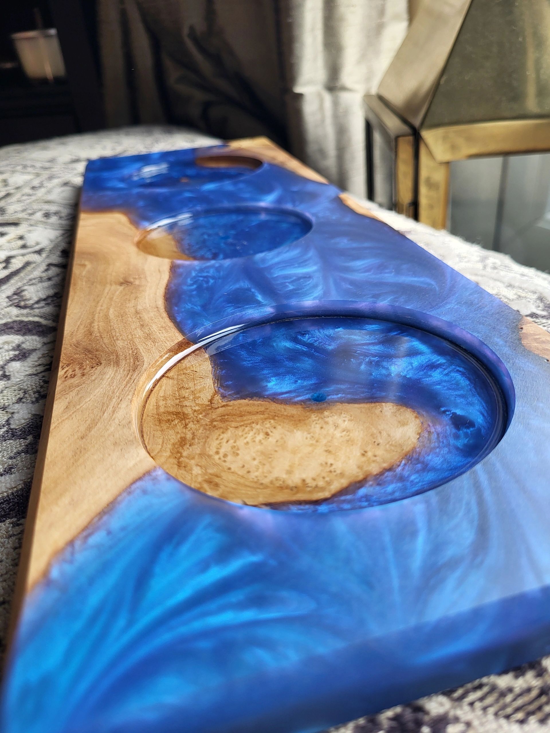 Just completed the work on this beautiful 18 x 11.5 custom cherry wood and resin chequered serving board. The client requested this design to match a set of coasters they had already obtained whilst away on holiday. After a good consultation period (the best way, in my opinion, is having client input in the design process) the project was launched. What do you all think of the finished product?